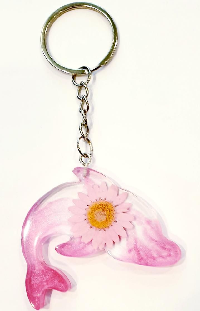 Handmade Dolphin eco resin keyring.