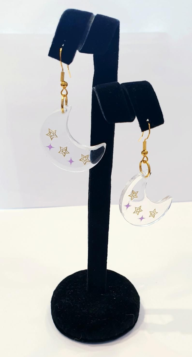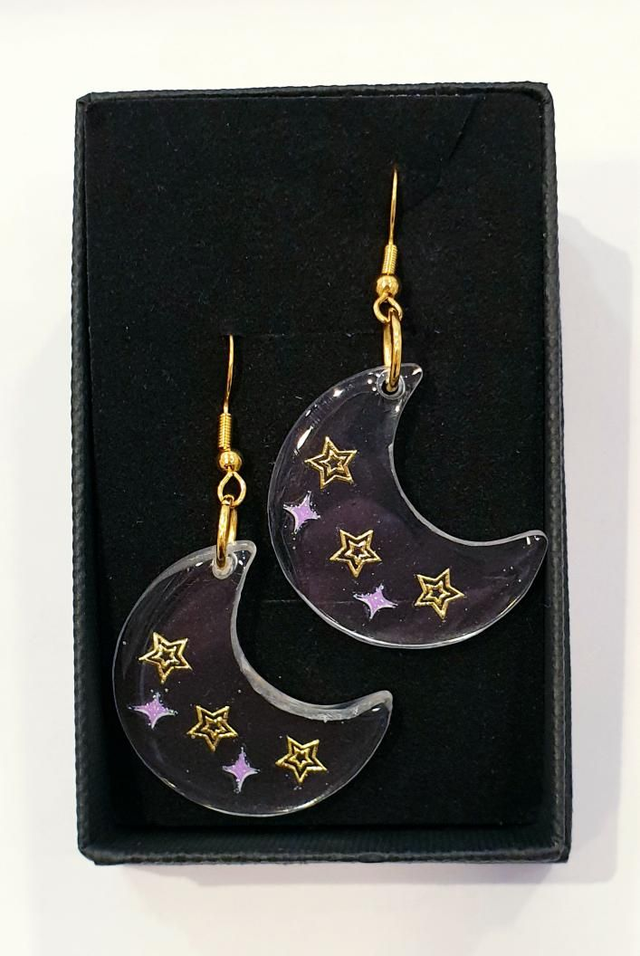 Gold and pink star stickers set in eco resin to make these lovely moon shaped earrings.