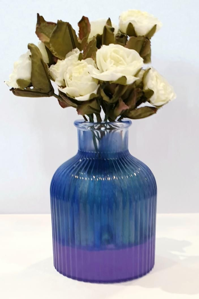 Blue and purple mica powder mixed in resin to make this charming vase.