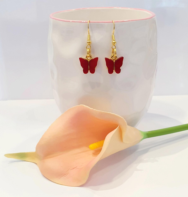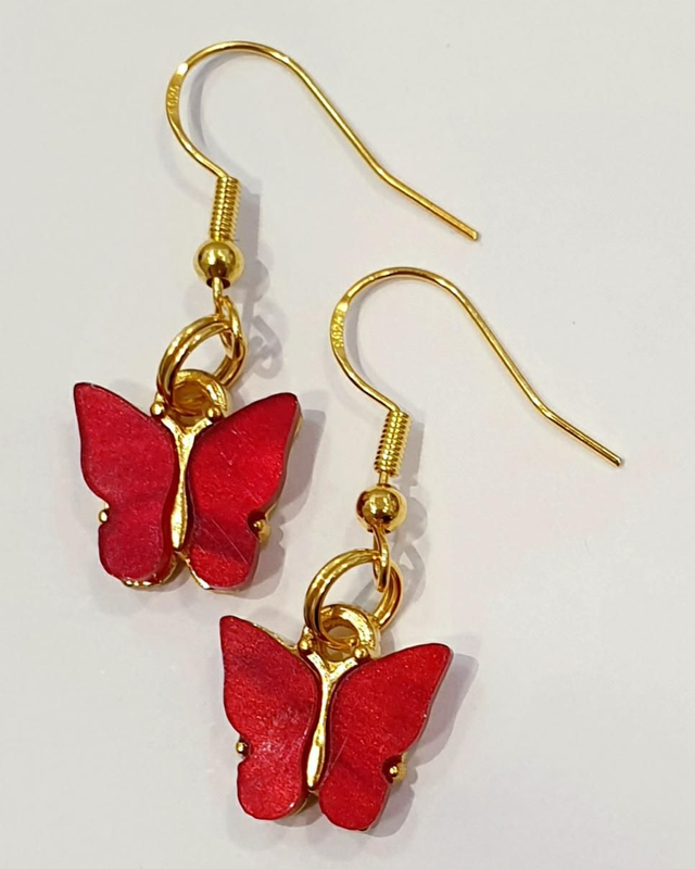 Handmade Red butterfly earrings.