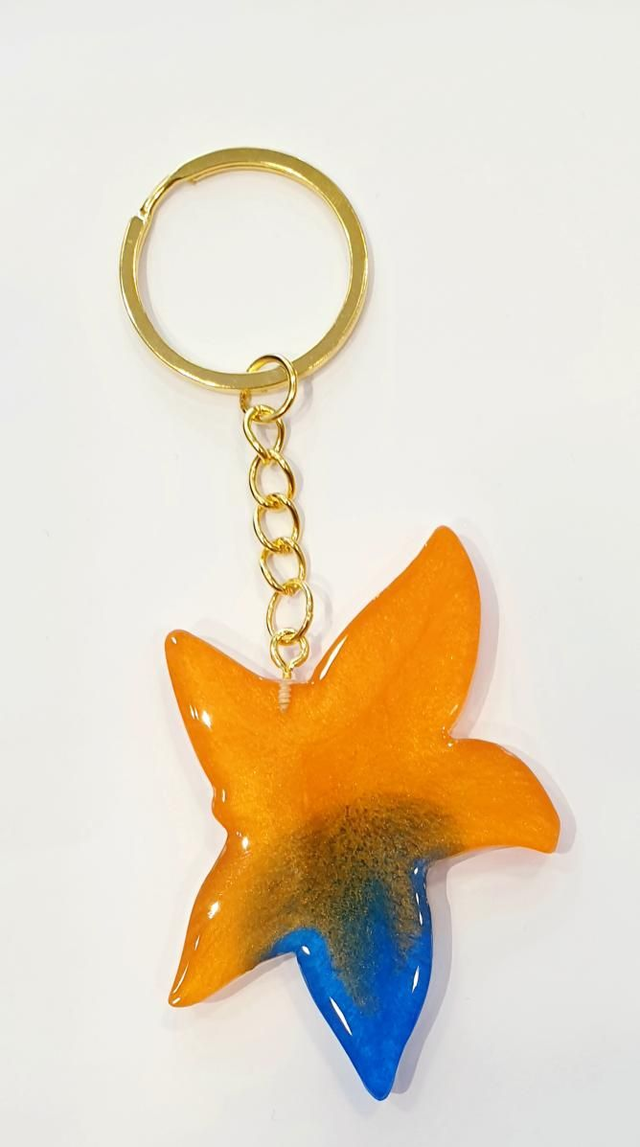 Orange and blue mica powder set in eco resin to make this bright and colourful keyring.