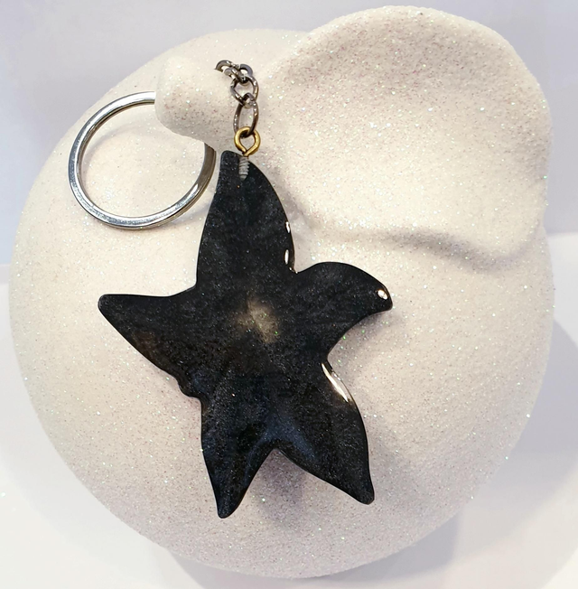 Black mica powder mixed in eco resin to make this lovely Keyring.